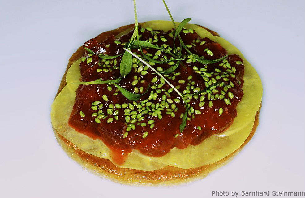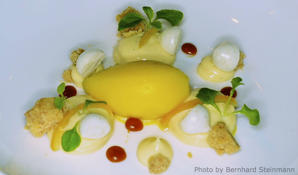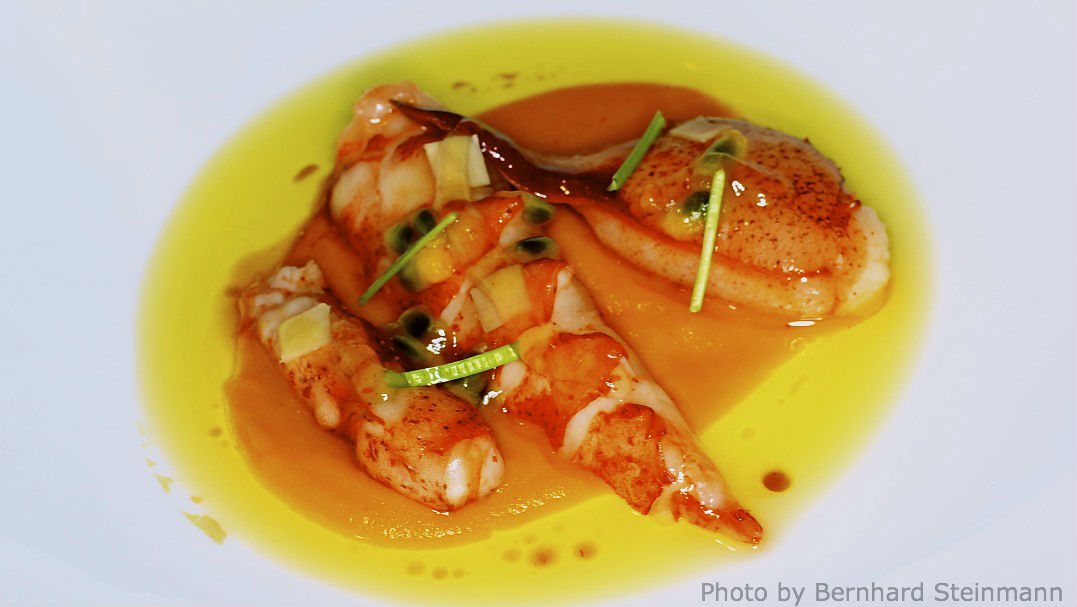 Passionsfrucht, ein köstliches Karottenpüree und geschmolzene Butter vervollständigen einen grandiosen Gang.