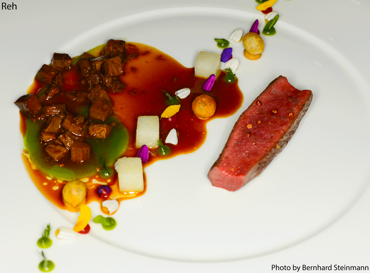Das Ragout aus der Schulter wird ca. eine Woche lang geschmort und ist dementsprechend zart. Hinzu kommt ein erstklassiges Filet und in der Beilagenstrecke das nussige und feinaromatische Aroma von Kohlrabi.